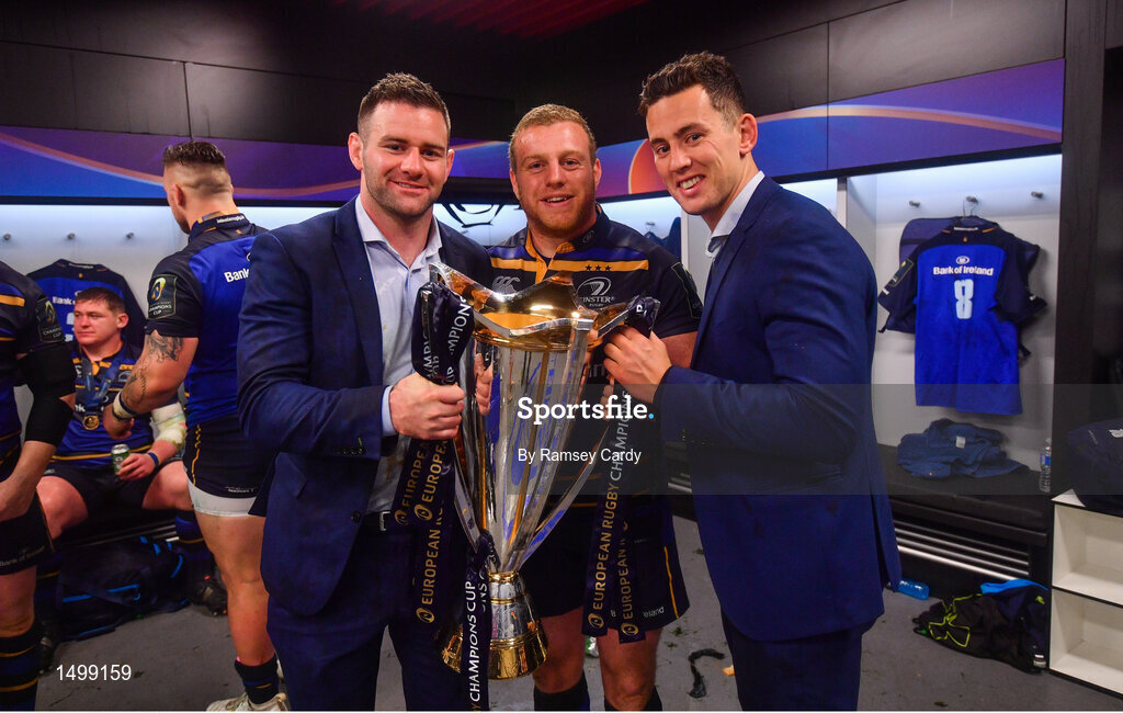 12 May 2018; Fergus McFadden, Sean Cronin, Noel Reid of Leinster following their victory in the European Rugby Champions Cup Final match between Leinster and Racing 92 at the San Mames Stadium in Bilbao, Spain. Photo by Ramsey Cardy/Sportsfile