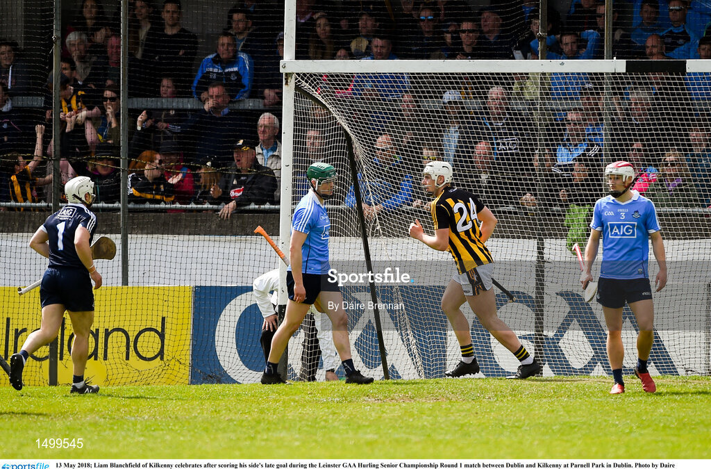 13 May 2018; Liam Blanchfield of Kilkenny celebrates after scoring his side's late goal during the Leinster GAA Hurling Senior Championship Round 1 match between Dublin and Kilkenny at Parnell Park in Dublin. Photo by Daire Brennan/Sportsfile