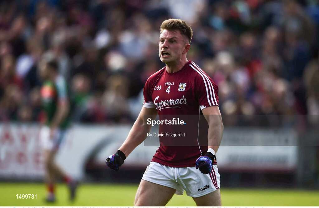 13 May 2018; Eoghan Kerin of Galway celebrates at the final whistle following the Connacht GAA Football Senior Championship Quarter-Final match between Mayo and Galway at Elvery's MacHale Park in Mayo. Photo by David Fitzgerald/Sportsfile