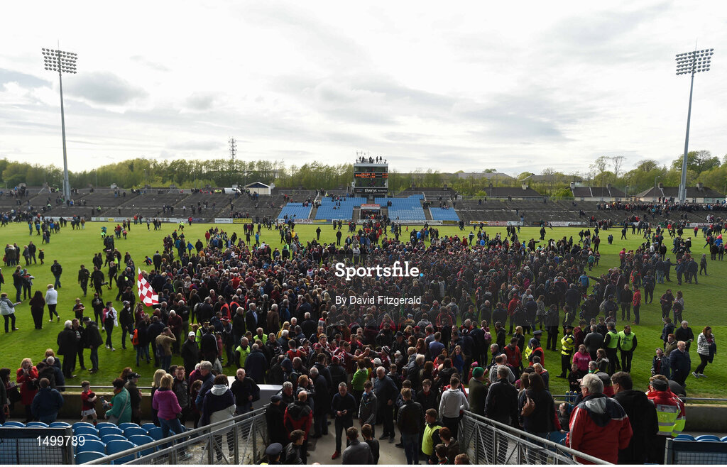 13 May 2018; Galway fans congratulate their team on the pitch following the Connacht GAA Football Senior Championship Quarter-Final match between Mayo and Galway at Elvery's MacHale Park in Mayo. Photo by David Fitzgerald/Sportsfile