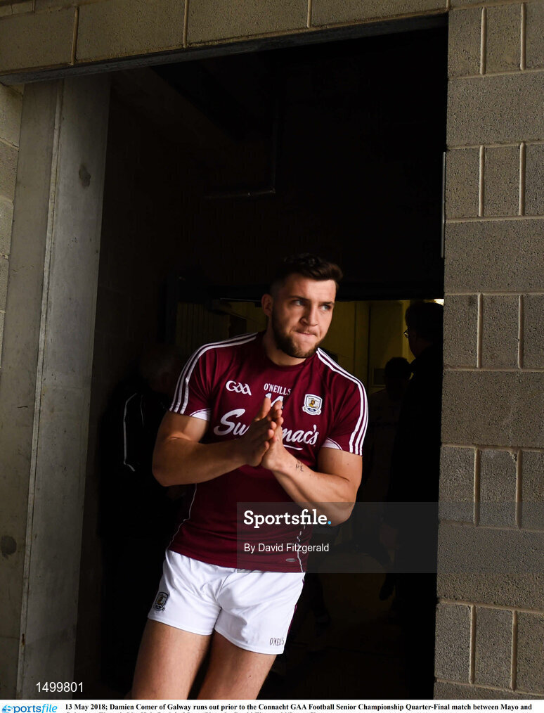 13 May 2018; Damien Comer of Galway runs out prior to the Connacht GAA Football Senior Championship Quarter-Final match between Mayo and Galway at Elvery's MacHale Park in Mayo. Photo by David Fitzgerald/Sportsfile