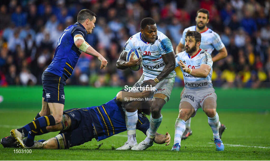 12 May 2018; Virimi Vakatawa of Racing 92 is tackled by Scott Fardy of Leinster during the European Rugby Champions Cup Final match between Leinster and Racing 92 at the San Mames Stadium in Bilbao, Spain. Photo by Brendan Moran/Sportsfile