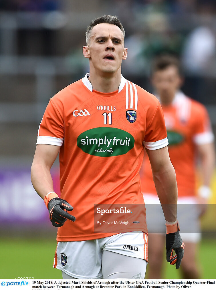 19 May 2018; A dejected Mark Shields of Armagh after the Ulster GAA Football Senior Championship Quarter-Final match between Fermanagh and Armagh at Brewster Park in Enniskillen, Fermanagh. Photo by Oliver McVeigh/Sportsfile