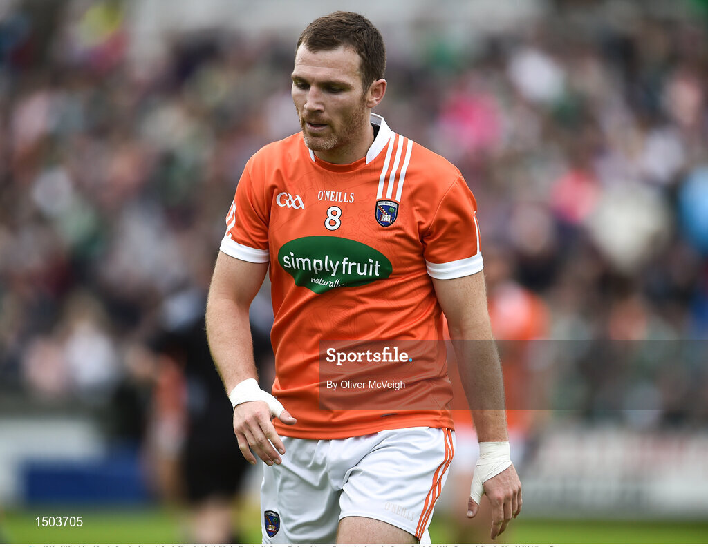 19 May 2018; A dejected Brendan Donaghy of Armagh after the Ulster GAA Football Senior Championship Quarter-Final match between Fermanagh and Armagh at Brewster Park in Enniskillen, Fermanagh. Photo by Oliver McVeigh/Sportsfile