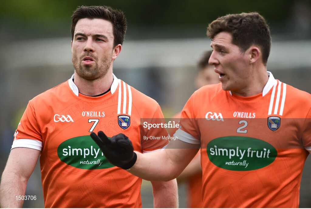 19 May 2018; A dejected Aidan Forker, left, and Patrick Burns of Armagh after the Ulster GAA Football Senior Championship Quarter-Final match between Fermanagh and Armagh at Brewster Park in Enniskillen, Fermanagh. Photo by Oliver McVeigh/Sportsfile