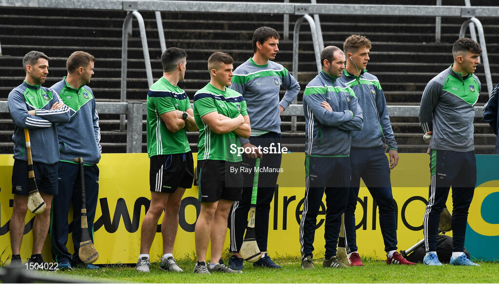 20 May 2018; Limerick players watch the Minor game before the Munster GAA Hurling Senior Championship Round 1 match between Limerick and Tipperary at the Gaelic Grounds in Limerick. Photo by Ray McManus/Sportsfile
