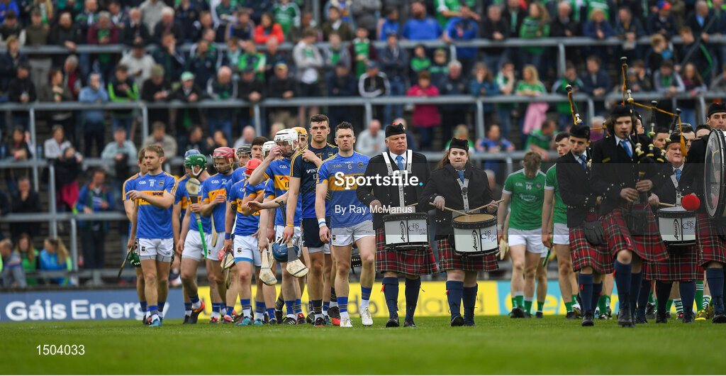 20 May 2018; The Tipperary and Limerick teams on parade prior to the Munster GAA Hurling Senior Championship Round 1 match between Limerick and Tipperary at the Gaelic Grounds in Limerick. Photo by Ray McManus/Sportsfile
