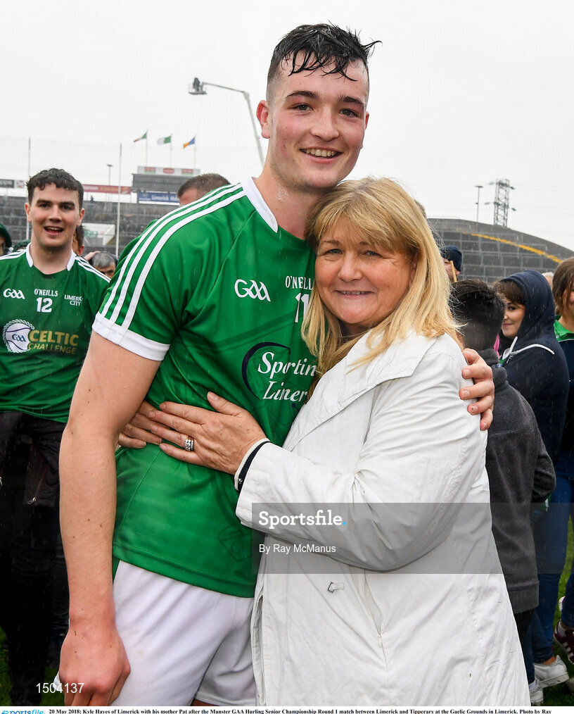 20 May 2018; Kyle Hayes of Limerick with his mother Pat after the Munster GAA Hurling Senior Championship Round 1 match between Limerick and Tipperary at the Gaelic Grounds in Limerick. Photo by Ray McManus/Sportsfile