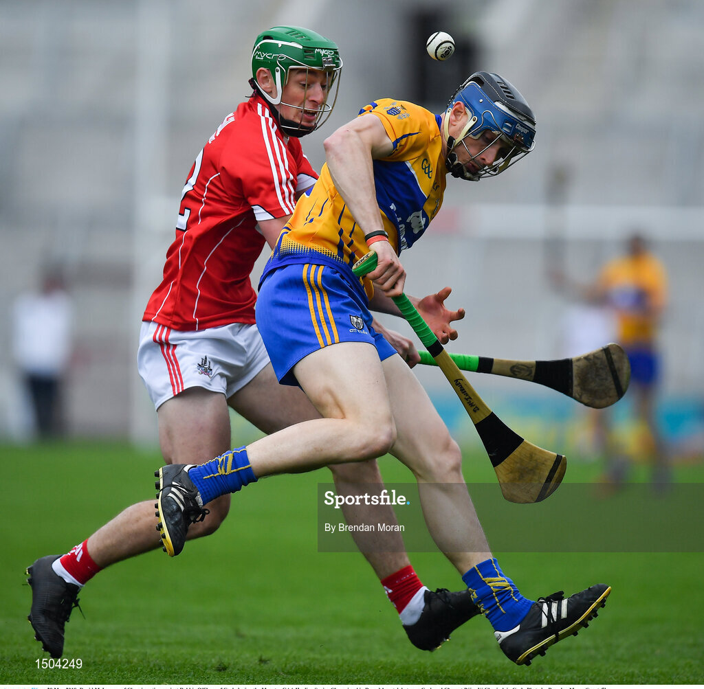 20 May 2018; David McInerney of Clare in action against Robbie O'Flynn of Cork during the Munster GAA Hurling Senior Championship Round 1 match between Cork and Clare at Páirc Uí Chaoimh in Cork. Photo by Brendan Moran/Sportsfile
