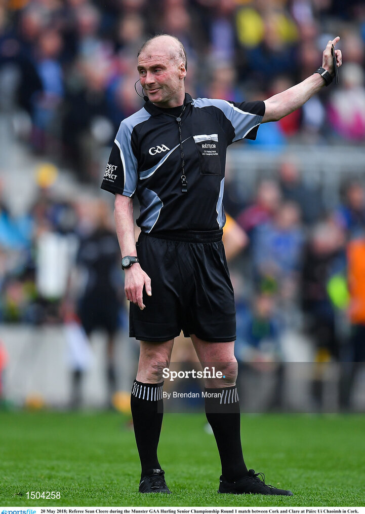 20 May 2018; Referee Sean Cleere during the Munster GAA Hurling Senior Championship Round 1 match between Cork and Clare at Páirc Uí Chaoimh in Cork. Photo by Brendan Moran/Sportsfile