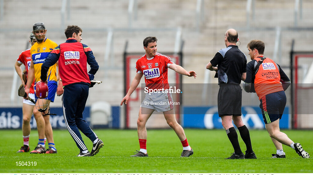 20 May 2018; Daniel Kearney of Cork leaves the pitch to receive medical attention during the Munster GAA Hurling Senior Championship Round 1 match between Cork and Clare at Páirc Uí Chaoimh in Cork. Photo by Brendan Moran/Sportsfile