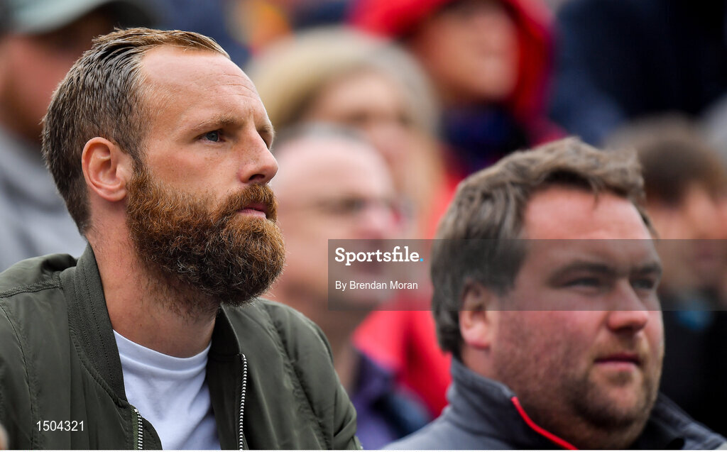 20 May 2018; Republic of Ireland soccer international David Meyler, son of Cork manager John Meyler, watches the Munster GAA Hurling Senior Championship Round 1 match between Cork and Clare at Páirc Uí Chaoimh in Cork. Photo by Brendan Moran/Sportsfile