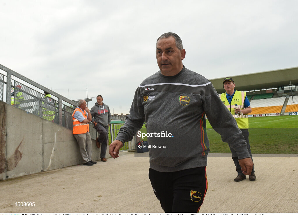 27 May 2018; Carlow manager Turlough O'Brien prior to the Leinster GAA Football Senior Championship Quarter-Final match between Carlow and Kildare at O'Connor Park in Tullamore, Offaly. Photo by Matt Browne/Sportsfile