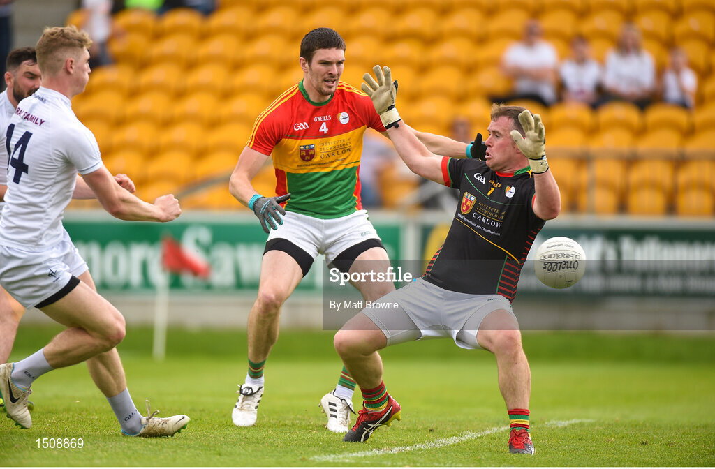 27 May 2018; Daniel Flynn of Kildare scores a goal after a mistake from Carlow goakleeper Robbie Molloy during the Leinster GAA Football Senior Championship Quarter-Final match between Carlow and Kildare at O'Connor Park in Tullamore, Offaly. Photo by Matt Browne/Sportsfile