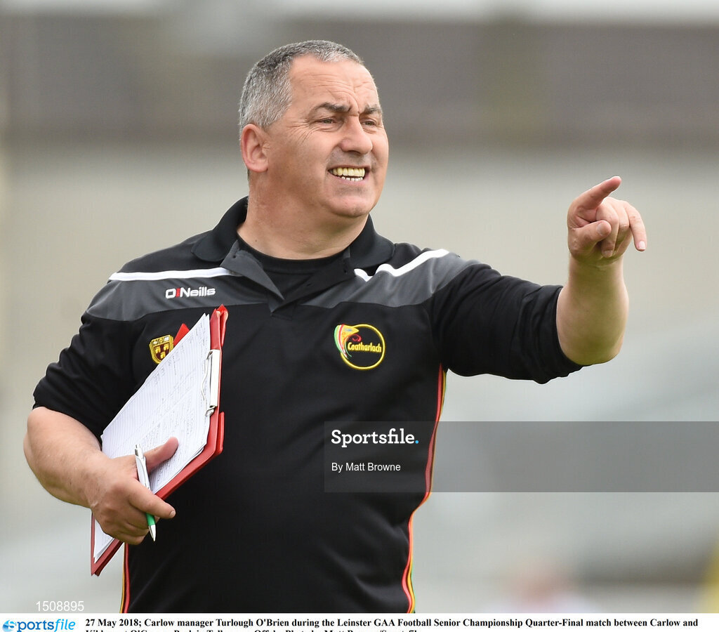 27 May 2018; Carlow manager Turlough O'Brien during the Leinster GAA Football Senior Championship Quarter-Final match between Carlow and Kildare at O'Connor Park in Tullamore, Offaly. Photo by Matt Browne/Sportsfile
