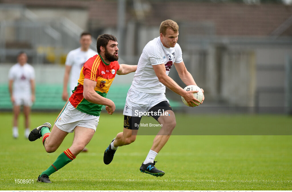27 May 2018; Peter Kelly of Kildare in action against Sean Murphy of Carlow during the Leinster GAA Football Senior Championship Quarter-Final match between Carlow and Kildare at O'Connor Park in Tullamore, Offaly. Photo by Matt Browne/Sportsfile