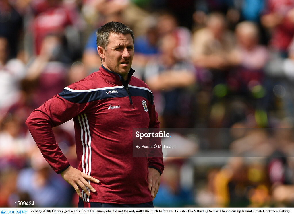 27 May 2018; Galway goalkeeper Colm Callanan, who did not tog out, walks the pitch before the Leinster GAA Hurling Senior Championship Round 3 match between Galway and Kilkenny at Pearse Stadium in Galway. Photo by Piaras Ó Mídheach/Sportsfile