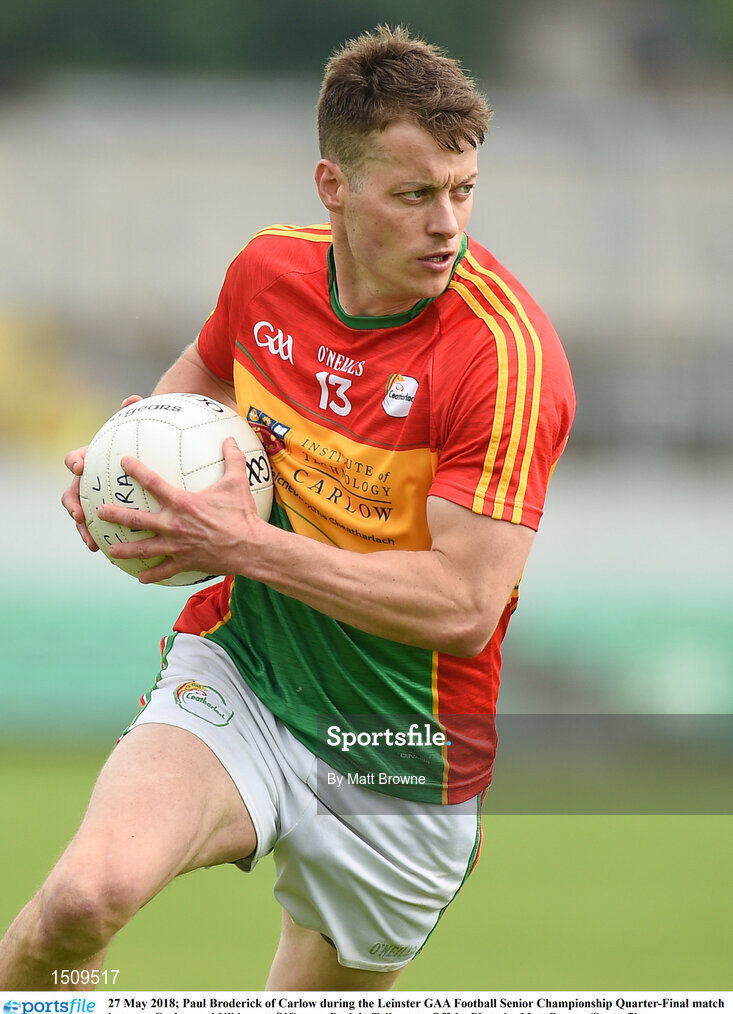 27 May 2018; Paul Broderick of Carlow during the Leinster GAA Football Senior Championship Quarter-Final match between Carlow and Kildare at O'Connor Park in Tullamore, Offaly. Photo by Matt Browne/Sportsfile