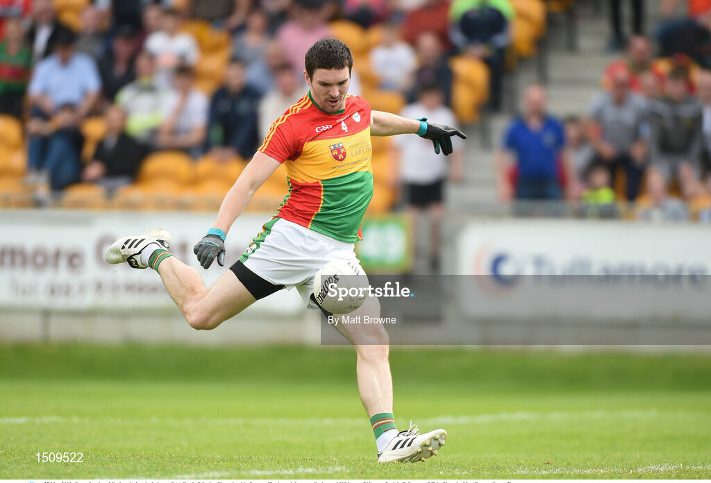 27 May 2018; Conor Lawlor of Carlow during the Leinster GAA Football Senior Championship Quarter-Final match between Carlow and Kildare at O'Connor Park in Tullamore, Offaly. Photo by Matt Browne/Sportsfile