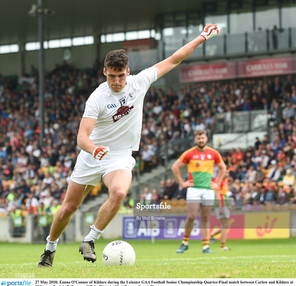 27 May 2018; Eanna O'Connor of Kildare during the Leinster GAA Football Senior Championship Quarter-Final match between Carlow and Kildare at O'Connor Park in Tullamore, Offaly. Photo by Matt Browne/Sportsfile