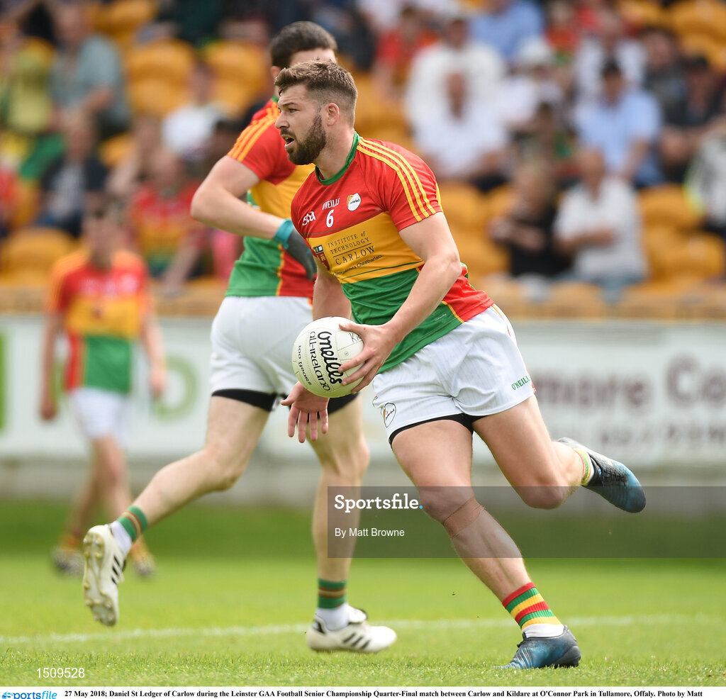 27 May 2018; Daniel St Ledger of Carlow during the Leinster GAA Football Senior Championship Quarter-Final match between Carlow and Kildare at O'Connor Park in Tullamore, Offaly. Photo by Matt Browne/Sportsfile