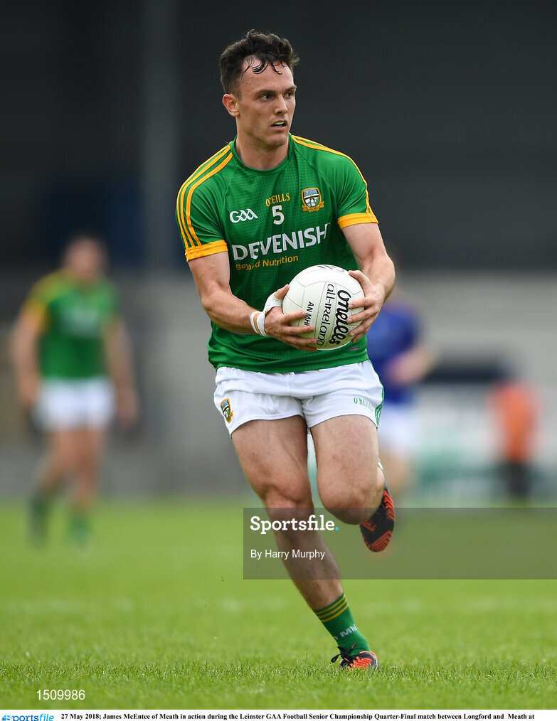 27 May 2018; James McEntee of Meath in action during the Leinster GAA Football Senior Championship Quarter-Final match between Longford and Meath at Glennon Brothers Pearse Park in Longford. Photo by Harry Murphy/Sportsfile