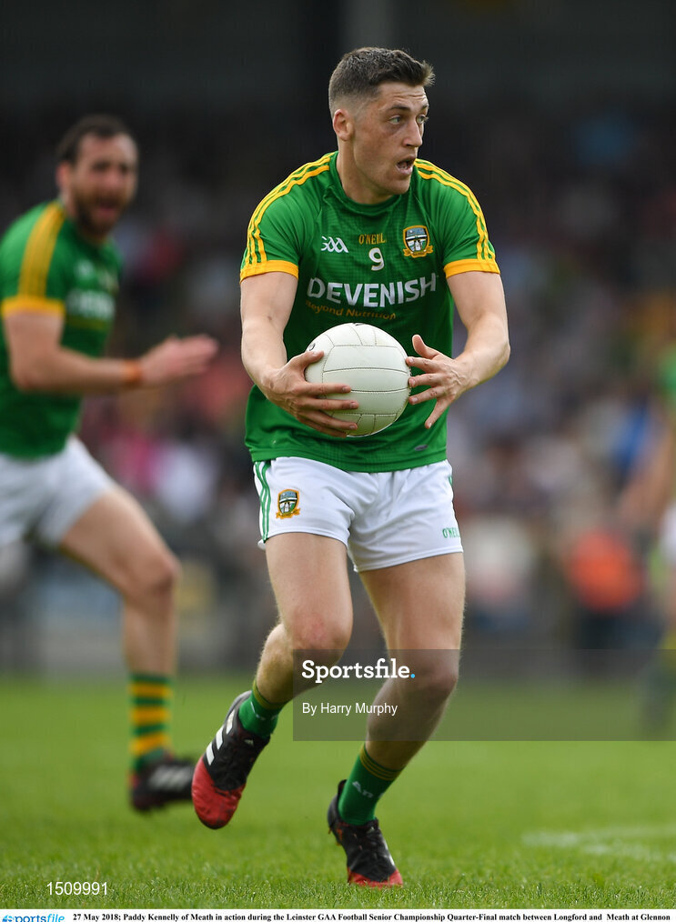 27 May 2018; Paddy Kennelly of Meath in action during the Leinster GAA Football Senior Championship Quarter-Final match between Longford and Meath at Glennon Brothers Pearse Park in Longford. Photo by Harry Murphy/Sportsfile