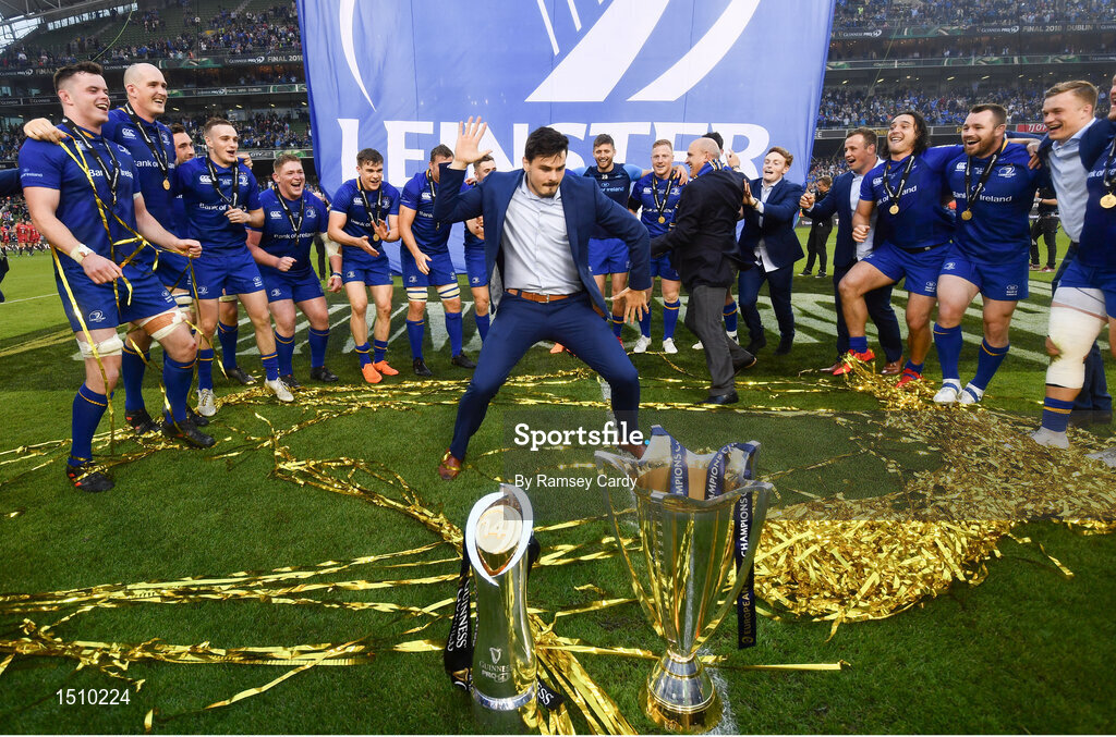 26 May 2018; Max Deegan of Leinster dances following their victory in the Guinness PRO14 Final between Leinster and Scarlets at the Aviva Stadium in Dublin. Photo by Ramsey Cardy/Sportsfile