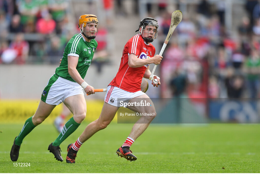 2 June 2018; Darragh Fitzgibbon of Cork in action against Séamus Flanagan of Limerick during the Munster GAA Hurling Senior Championship Round 3 match between Cork and Limerick at Páirc Uí Chaoimh in Cork. Photo by Piaras Ó Mídheach/Sportsfile