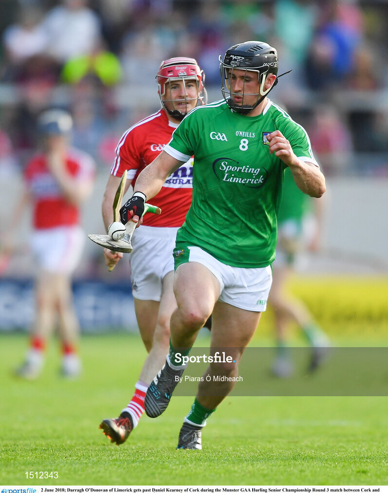 2 June 2018; Darragh O’Donovan of Limerick gets past Daniel Kearney of Cork during the Munster GAA Hurling Senior Championship Round 3 match between Cork and Limerick at Páirc Uí Chaoimh in Cork. Photo by Piaras Ó Mídheach/Sportsfile