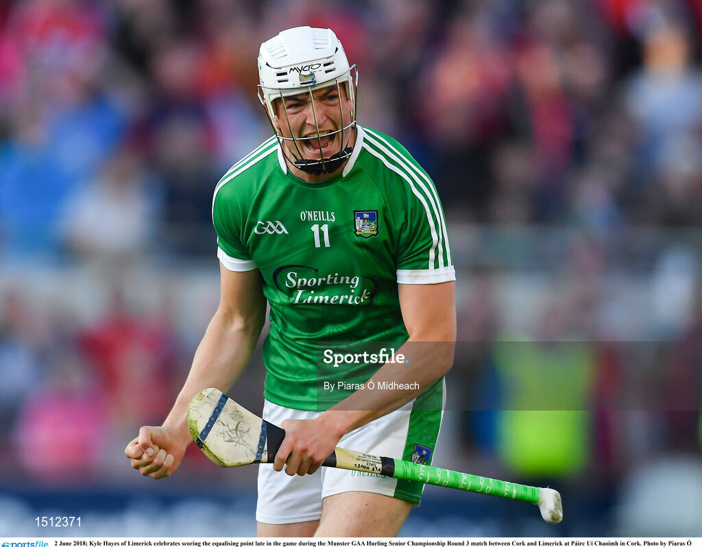 2 June 2018; Kyle Hayes of Limerick celebrates scoring the equalising point late in the game during the Munster GAA Hurling Senior Championship Round 3 match between Cork and Limerick at Páirc Uí Chaoimh in Cork. Photo by Piaras Ó Mídheach/Sportsfile