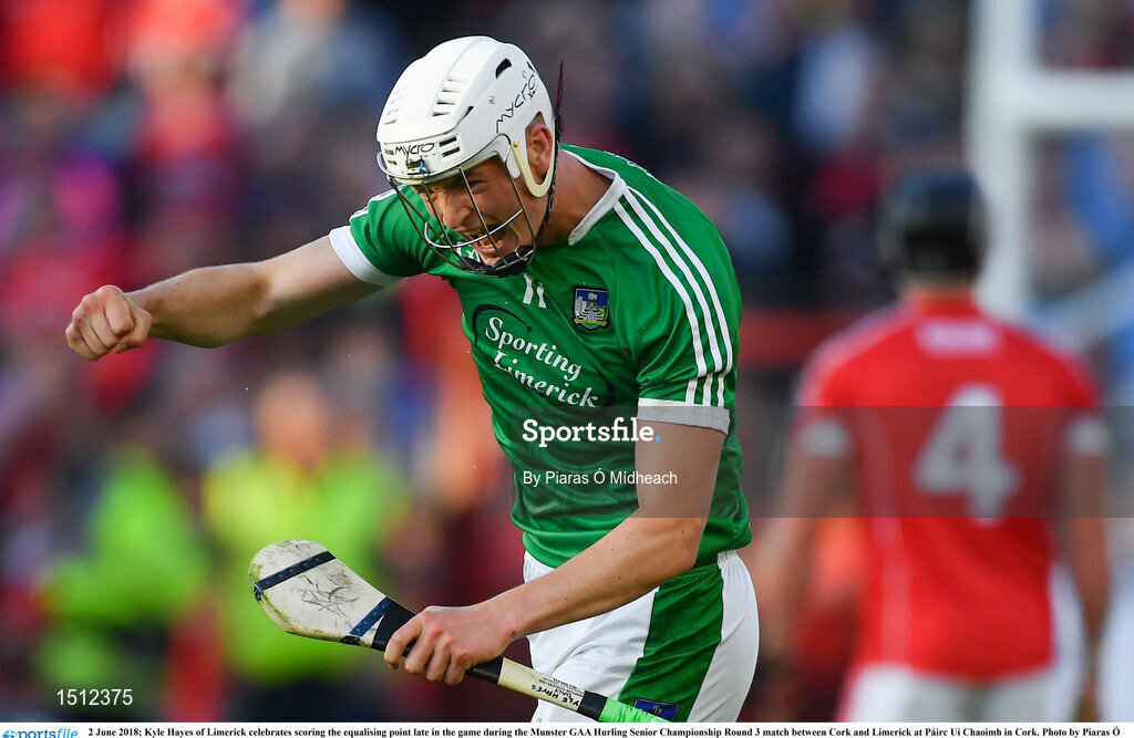 2 June 2018; Kyle Hayes of Limerick celebrates scoring the equalising point late in the game during the Munster GAA Hurling Senior Championship Round 3 match between Cork and Limerick at Páirc Uí Chaoimh in Cork. Photo by Piaras Ó Mídheach/Sportsfile