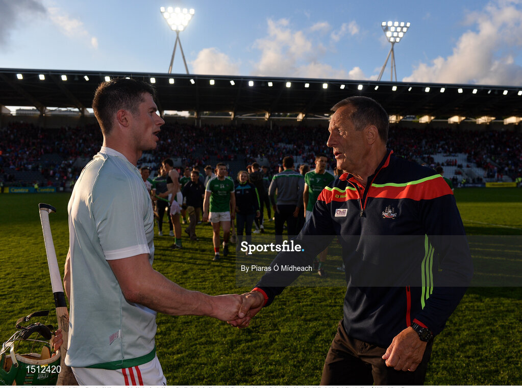 2 June 2018; Cork captain Séamus Harnedy with his manager John Meyler after the Munster GAA Hurling Senior Championship Round 3 match between Cork and Limerick at Páirc Uí Chaoimh in Cork. Photo by Piaras Ó Mídheach/Sportsfile
