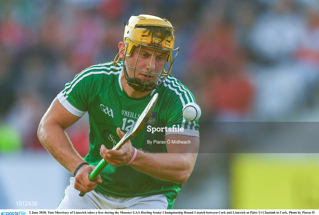 2 June 2018; Tom Morrissey of Limerick takes a free during the Munster GAA Hurling Senior Championship Round 3 match between Cork and Limerick at Páirc Uí Chaoimh in Cork. Photo by Piaras Ó Mídheach/Sportsfile