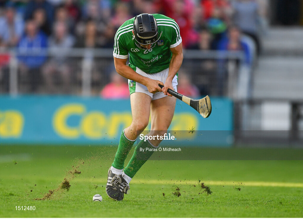 2 June 2018; Pat Ryan of Limerick misses a late goal chance during the Munster GAA Hurling Senior Championship Round 3 match between Cork and Limerick at Páirc Uí Chaoimh in Cork. Photo by Piaras Ó Mídheach/Sportsfile