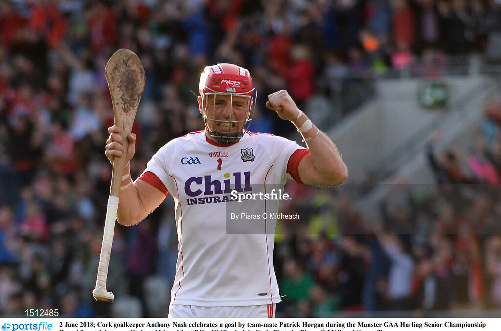 2 June 2018; Cork goalkeeper Anthony Nash celebrates a goal by team-mate Patrick Horgan during the Munster GAA Hurling Senior Championship Round 3 match between Cork and Limerick at Páirc Uí Chaoimh in Cork. Photo by Piaras Ó Mídheach/Sportsfile