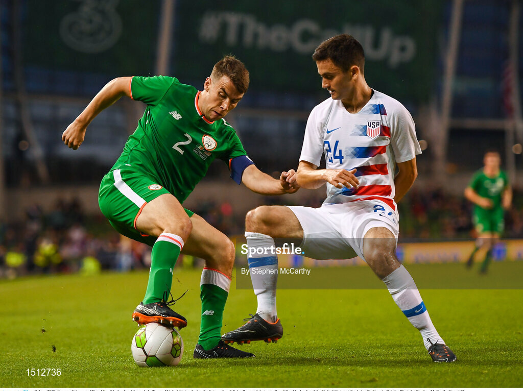 2 June 2018; Seamus Coleman of Republic of Ireland and Luca de la Torre of United States during the International Friendly match between Republic of Ireland and the United States at the Aviva Stadium in Dublin. Photo by Stephen McCarthy/Sportsfile