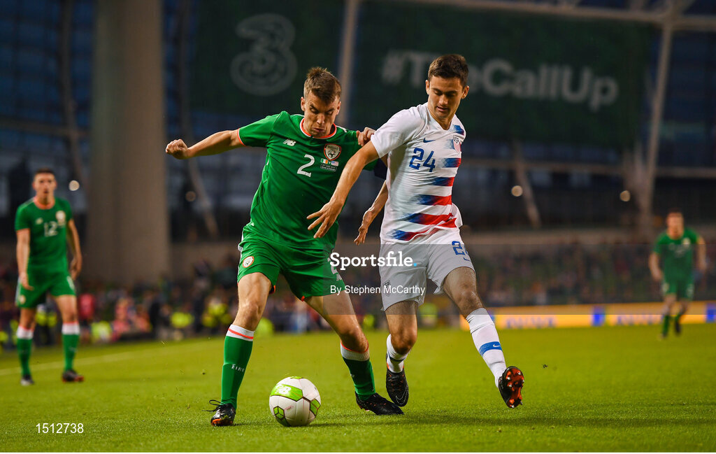 2 June 2018; Seamus Coleman of Republic of Ireland and Luca de la Torre of United States during the International Friendly match between Republic of Ireland and the United States at the Aviva Stadium in Dublin. Photo by Stephen McCarthy/Sportsfile