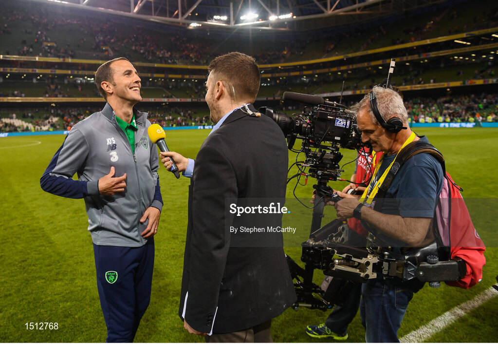 2 June 2018; John O'Shea of Republic of Ireland is interviewed following the International Friendly match between Republic of Ireland and the United States at the Aviva Stadium in Dublin. Photo by Stephen McCarthy/Sportsfile