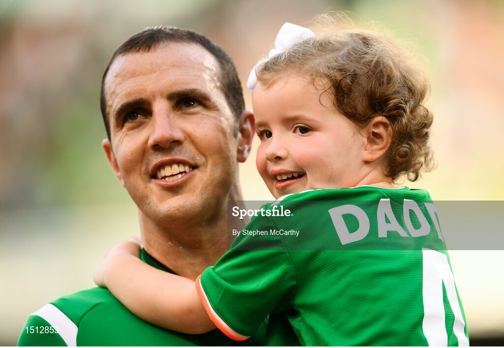 2 June 2018; John O'Shea of Republic of Ireland and daughter Ruby prior to the International Friendly match between Republic of Ireland and the United States at the Aviva Stadium in Dublin. Photo by Stephen McCarthy/Sportsfile