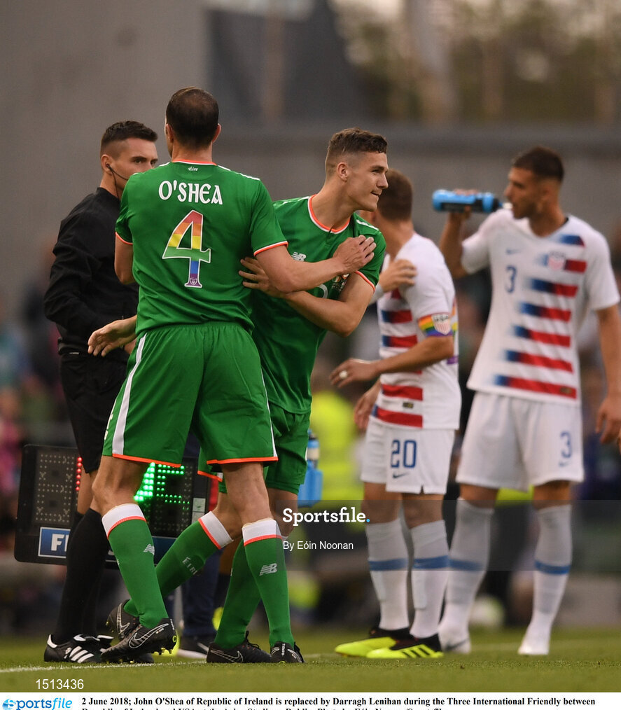 2 June 2018; John O'Shea of Republic of Ireland is replaced by Darragh Lenihan during the International Friendly match between Republic of Ireland and USA at the Aviva Stadium, Dublin. Photo by Eóin Noonan/Sportsfile