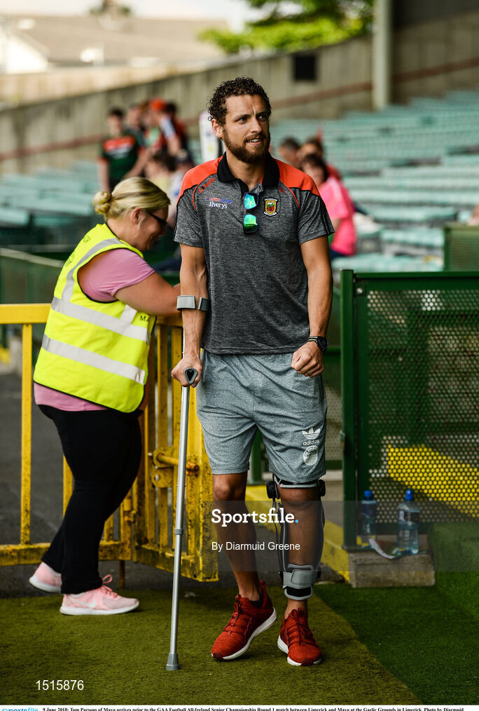 9 June 2018; Tom Parsons of Mayo arrives prior to the GAA Football All-Ireland Senior Championship Round 1 match between Limerick and Mayo at the Gaelic Grounds in Limerick. Photo by Diarmuid Greene/Sportsfile