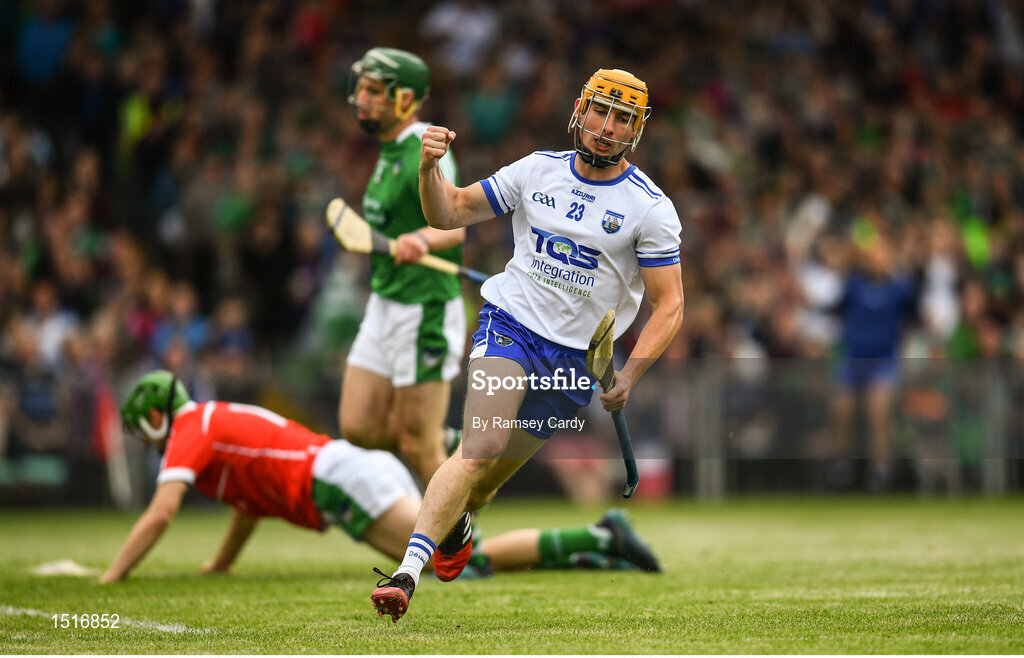 10 June 2018; Tommy Ryan of Waterford celebrates after scoring his side's first goal of the game during the Munster GAA Hurling Senior Championship Round 4 match between Limerick and Waterford at the Gaelic Grounds in Limerick. Photo by Ramsey Cardy/Sportsfile
