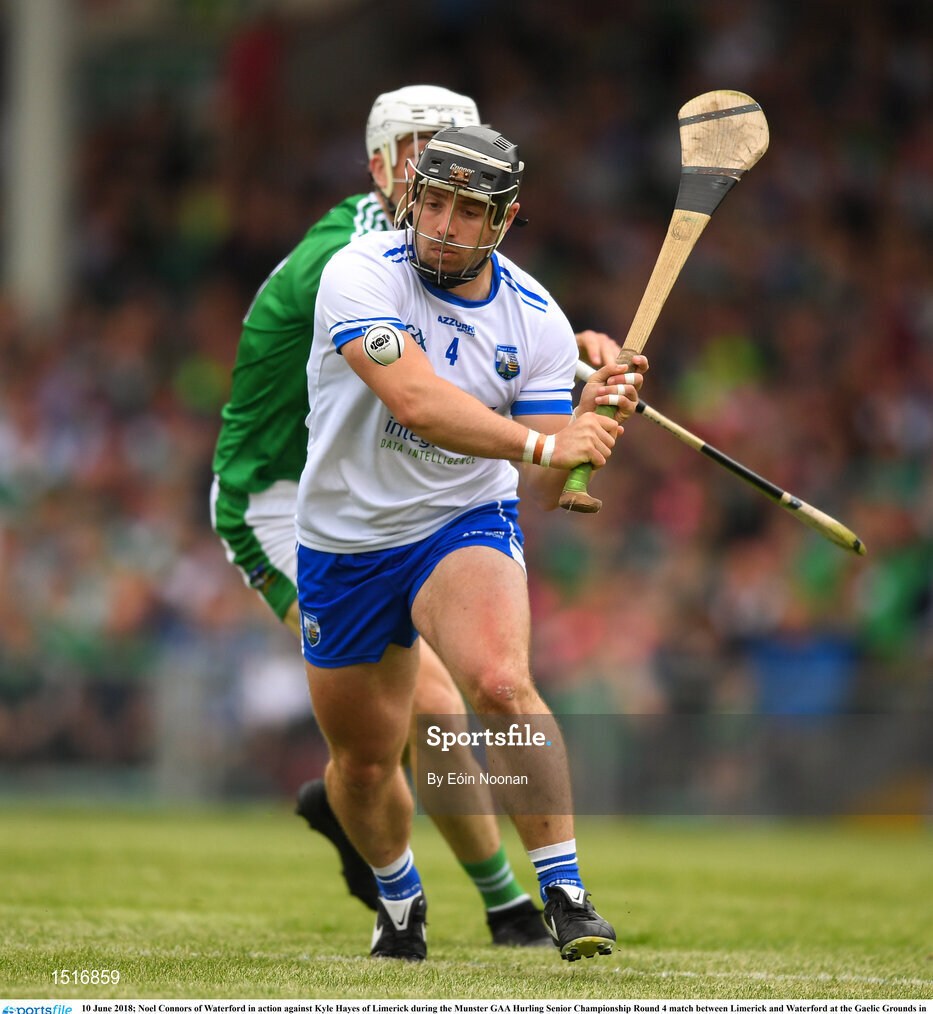 10 June 2018; Noel Connors of Waterford in action against Kyle Hayes of Limerick during the Munster GAA Hurling Senior Championship Round 4 match between Limerick and Waterford at the Gaelic Grounds in Limerick. Photo by Eóin Noonan/Sportsfile
