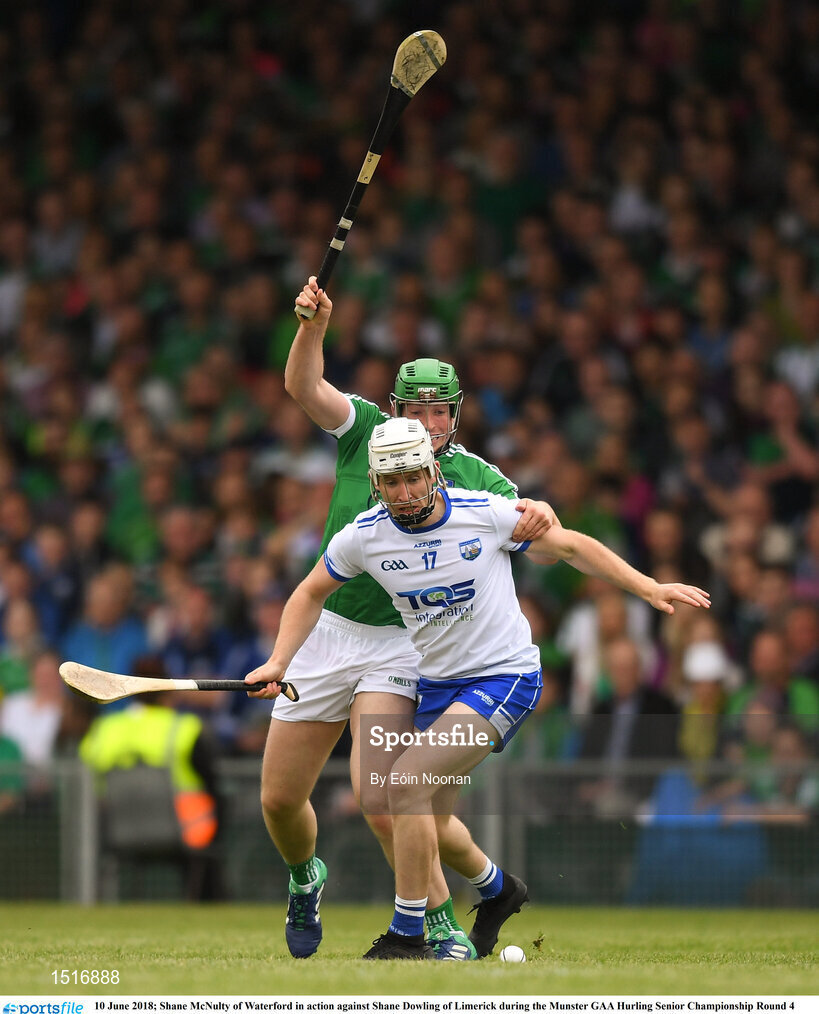 10 June 2018; Shane McNulty of Waterford in action against Shane Dowling of Limerick during the Munster GAA Hurling Senior Championship Round 4 match between Limerick and Waterford at the Gaelic Grounds in Limerick. Photo by Eóin Noonan/Sportsfile