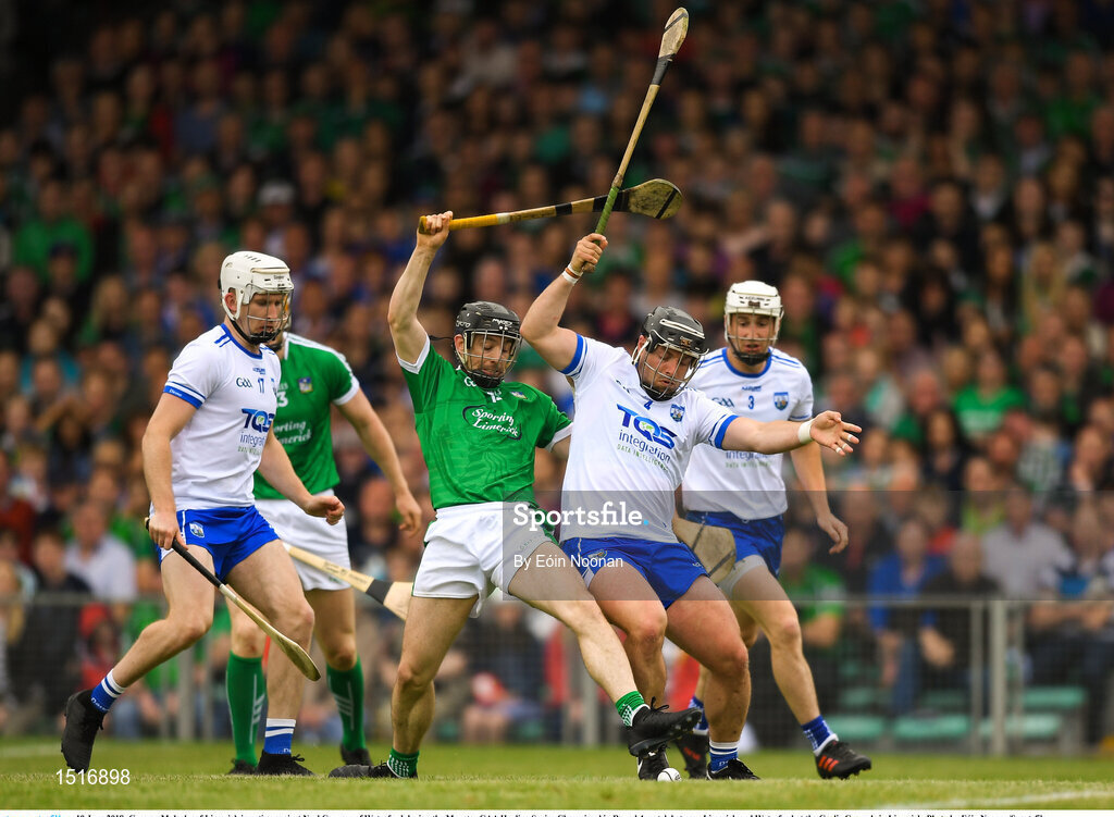 10 June 2018; Graeme Mulcahy of Limerick in action against Noel Connors of Waterford during the Munster GAA Hurling Senior Championship Round 4 match between Limerick and Waterford at the Gaelic Grounds in Limerick. Photo by Eóin Noonan/Sportsfile