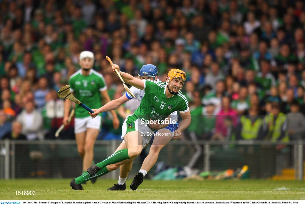 10 June 2018; Seamus Flanagan of Limerick in action against Austin Gleeson of Waterford during the Munster GAA Hurling Senior Championship Round 4 match between Limerick and Waterford at the Gaelic Grounds in Limerick. Photo by Eóin Noonan/Sportsfile