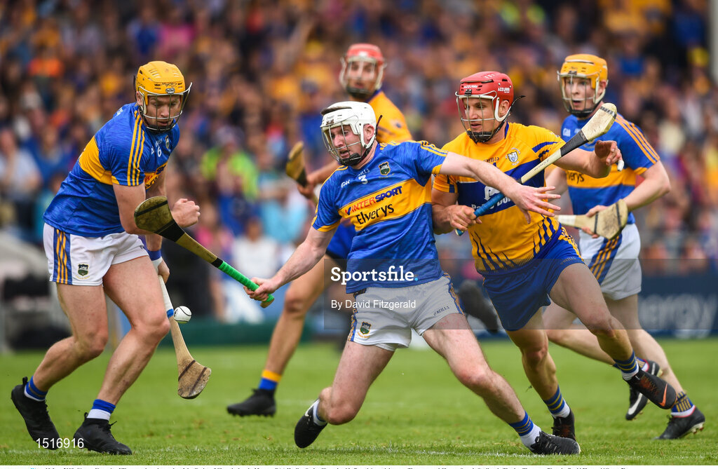 10 June 2018; Séamus Kennedy of Tipperary in action against John Conlon of Clare during the Munster GAA Hurling Senior Championship Round 4 match between Tipperary and Clare at Semple Stadium in Thurles, Tipperary. Photo by David Fitzgerald/Sportsfile