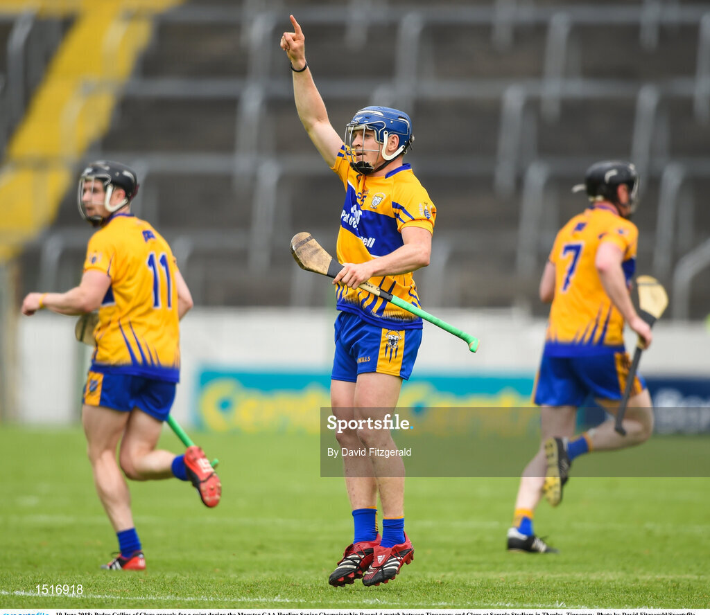 10 June 2018; Podge Collins of Clare appeals for a point during the Munster GAA Hurling Senior Championship Round 4 match between Tipperary and Clare at Semple Stadium in Thurles, Tipperary. Photo by David Fitzgerald/Sportsfile