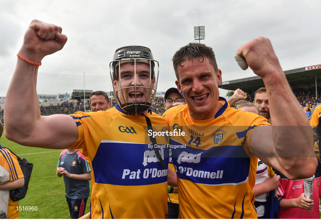 10 June 2018; Tony Kelly, left, and John Conlon of Clare celebrate following the Munster GAA Hurling Senior Championship Round 4 match between Tipperary and Clare at Semple Stadium in Thurles, Tipperary. Photo by David Fitzgerald/Sportsfile